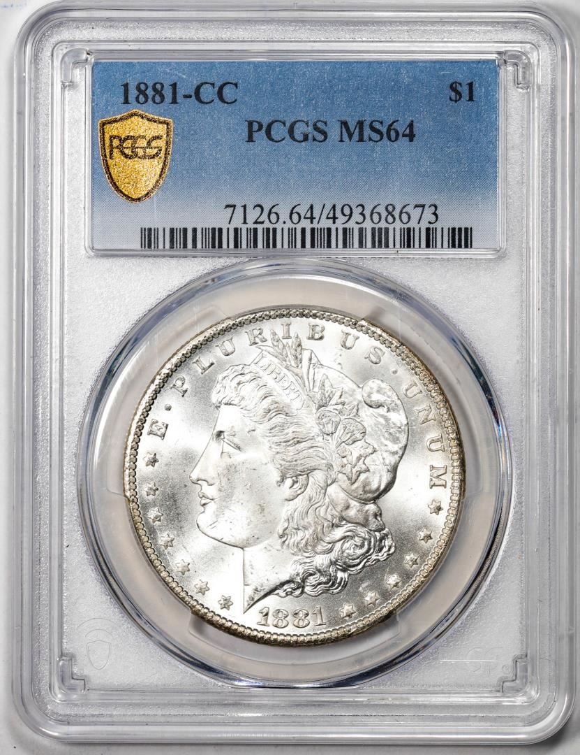One 1881-CC $1 Morgan Silver Dollar Coin PCGS MS64. PCGS Graded.