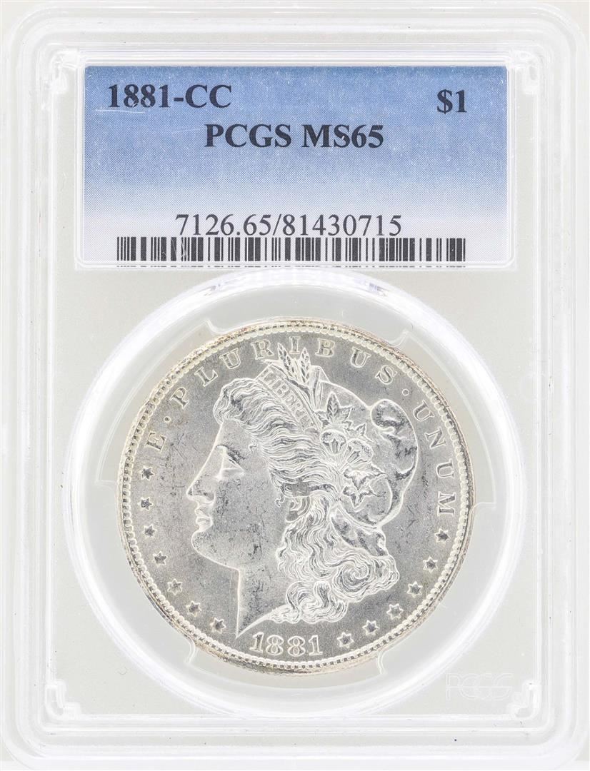 One 1881-CC $1 Morgan Silver Dollar Coin PCGS MS65. PCGS Graded.