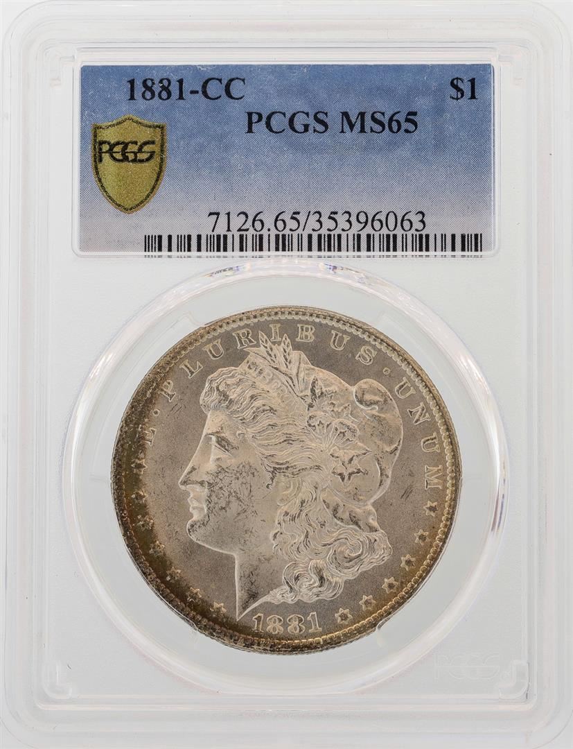 One 1881-CC $1 Morgan Silver Dollar Coin PCGS MS65. PCGS Graded.