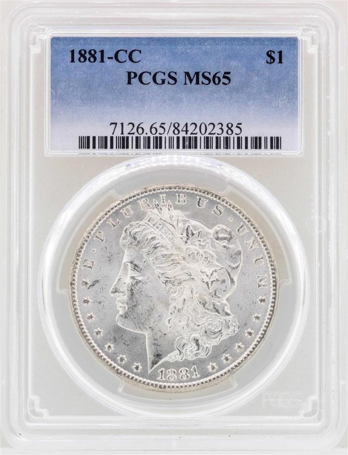 One 1881-CC $1 Morgan Silver Dollar Coin PCGS MS65. PCGS Certified.