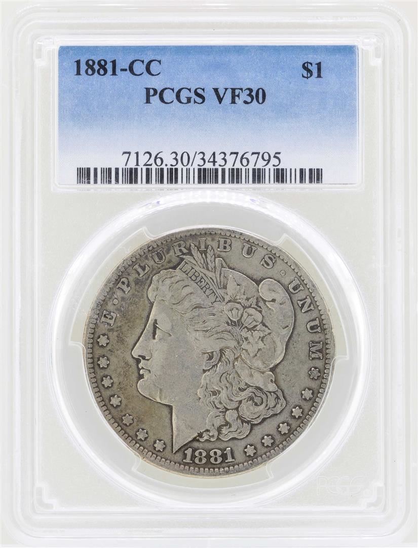 One 1881-CC $1 Morgan Silver Dollar Coin PCGS VF30. PCGS Graded.