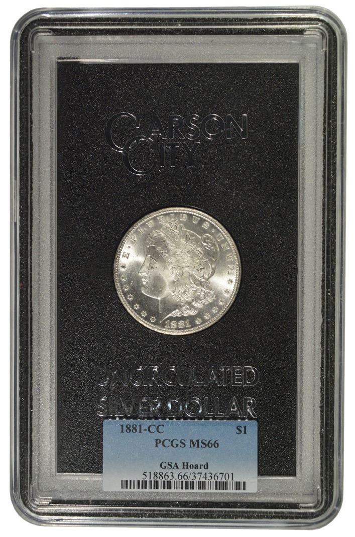One 1881-CC $1 Morgan Silver Dollar GSA PCGS MS66.