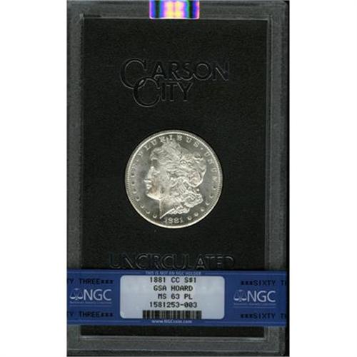 <B>1881-CC $1 MS63 Prooflike NGC.</B></I> The Box and Certificate of Issue are included. NGC Census: (121/251). PCGS Population (292/479). Numismedia Wsl. Price for NGC/PCGS coin in MS63: $480. (#7127)<BR><BR><B>Coin Engraver:</B> George T. Morgan<BR><BR><b>Shipping:</b> Coins & Currency (<a target="_blank" href="http://www.heritageauctions.com/common/shipping.php">view shipping information</a>)