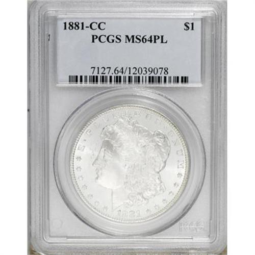 <B>1881-CC $1 MS64 Prooflike PCGS.</B></I> PCGS Population (324/156). NGC Census: (182/69). Numismedia Wsl. Price for NGC/PCGS coin in MS64: $510. (#7127)<BR><BR><B>Coin Engraver:</B> George T. Morgan<BR><BR><b>Shipping:</b> Coins & Currency (<a target="_blank" href="http://www.heritageauctions.com/common/shipping.php">view shipping information</a>)