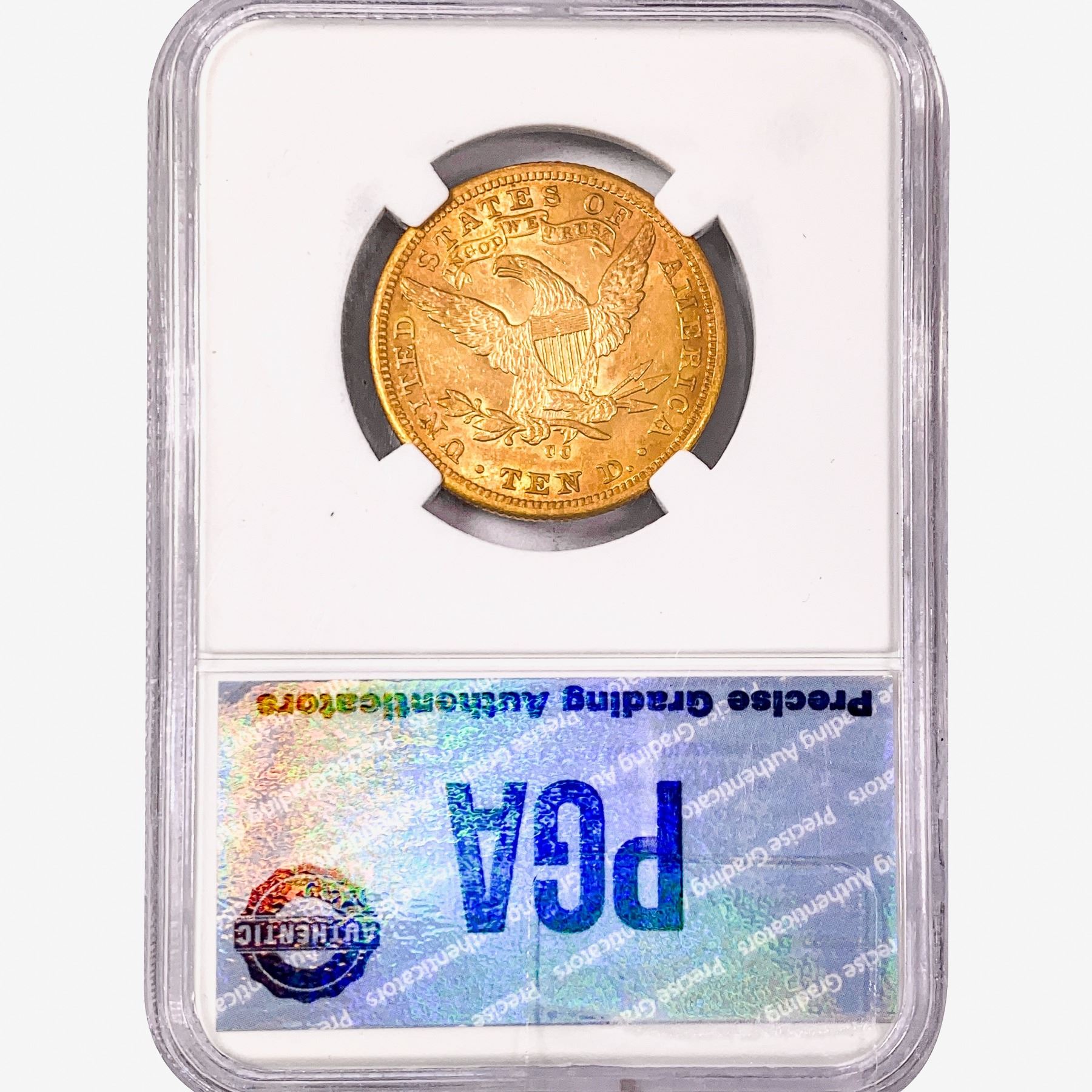 COINS AND CURRENCY LISTED IN GSA'S CATALOG AS GRADED AND ENCAPSULATED BY PCGS, NGC, ANACS, ICG, PCGS CURRENCY, PMG, PCGS BANKNOTE GRADING, CMC OR ANY OTHER THIRD-PARTY GRADING SERVICE ARE LIKEWISE SOLD "AS-IS" EXCEPT AS EXPRESSLY SET FORTH HEREIN. ALL THIRD-PARTY GRADING SERVICE GUARANTEES, INCLUDING AUTHENTICITY, ARE THE SOLE RESPONSIBILITY OF THE THIRD-PARTY GRADING SERVICE AND NOT WARRANTIES OR GUARANTEES OF GSA. BIDDERS SHOULD CONTACT THESE THIRD-PARTY GRADING SERVICES DIRECTLY WITH RESPECT TO ANY CLAIMS OR QUESTIONS THEY MAY HAVE CONCERNING THEIR GUARANTEES AND WARRANTIES. BIDDERS ACKNOWLEDGE AND AGREE THAT AUCTIONEER IS NOT BOUND BY OR LIABLE FOR ANY OPINION OR CERTIFICATION BY ANY THIRD-PARTY GRADING SERVICE. REMOVAL OF A PRODUCT FROM ITS PROTECTIVE CASING OR HOLDER OR ALTERATION OF ANY COIN HOLDER WAIVES ALL RIGHTS CONCERNING THE PRODUCT CONTAINED THEREIN.
