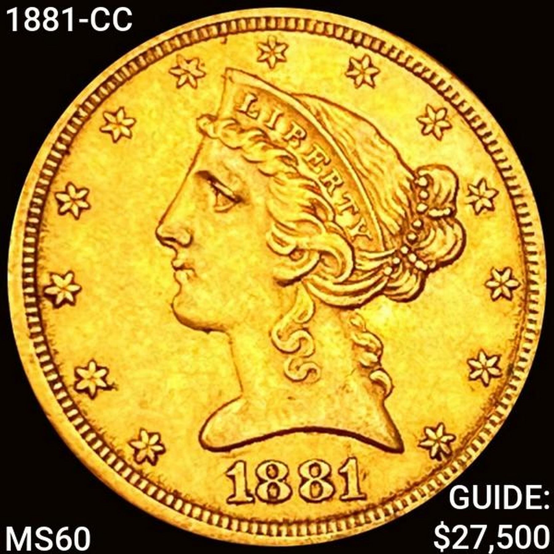 1881-CC $5 Gold Half Eagle UNCIRCULATED