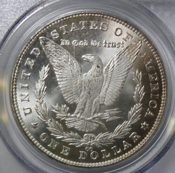 THE OBVERSE IS COMPLETELY WHITE WHILE THE REVERSE HAS LIGHT GOLD TONE DEVELOPING. ESTIMATE $550 - $600.