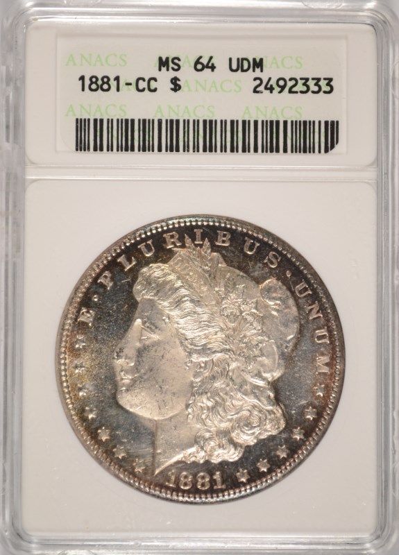 1881-CC MORGAN SILVER DOLLAR, ANACS MS-64 UDM ( ULTRA DEEP MIRROR ) BEAUTIFUL