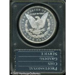 <B>1881-CC<img border='0' src='http://www.heritagecoins.com/images/star.gif' width=10 height=10>$1 MS64 Deep Mirror Prooflike PCGS.</B></I> Thick mint frost resides on the devices and the mirrors show exceptional depth. Housed in a first-generation PCGS holder. Lot:10038