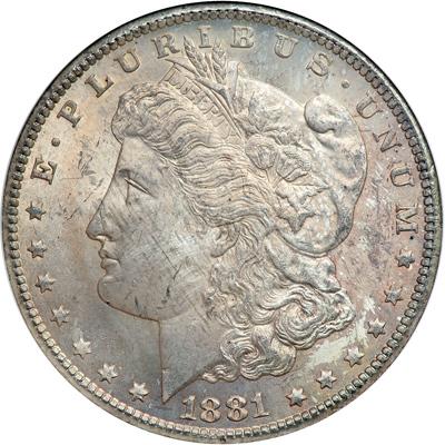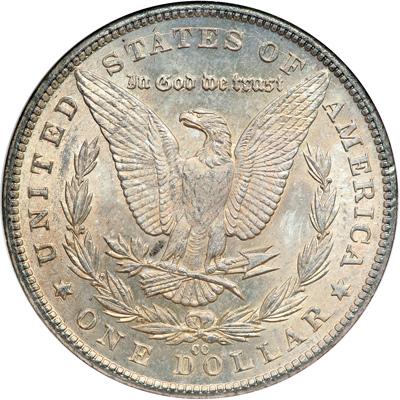 1881-CC Morgan Dollar. NGC graded MS-64. Frosty with light violet-gold toning. A choice, attractive coin, possibly it was once a part of the GSA group of CC dollars (PCGS # 7126) .