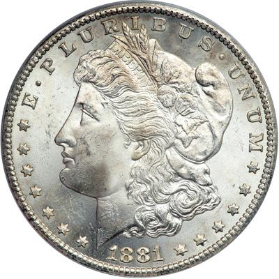 1881-CC Morgan Dollar. PCGS graded MS-64. Well struck and frosty, the luster emphasizes the strength of detail found in the main devices. This item along should encourage a strong bid (PCGS # 7126) .