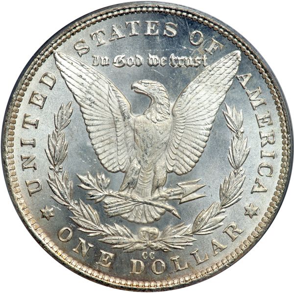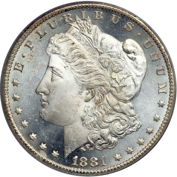 1881-CC Morgan Dollar. PCGS graded MS-65 Prooflike CAC Approved. Housed in an Old Green Holder. A nice white coin. Pop 152; 31 finer, 1 in 65+PL and 30 in 66PL (PCGS # 7127) .