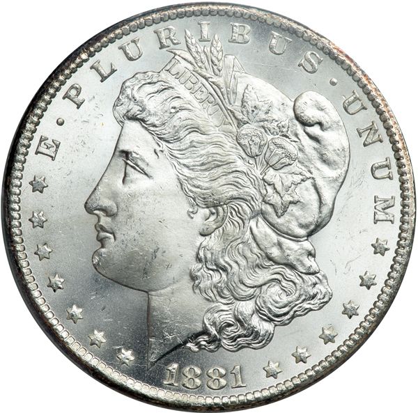 1881-CC Morgan Dollar. PCGS graded MS-65. Well struck and white. This well liked issue, with its resiliant frosty luster, is just the ticket for a collector who wants a Gem-quality CC-mint dollar (PCGS # 7126) .