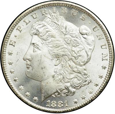 1881-CC. GSA. NGC graded MS-65. Housed in the large black GSA holder.