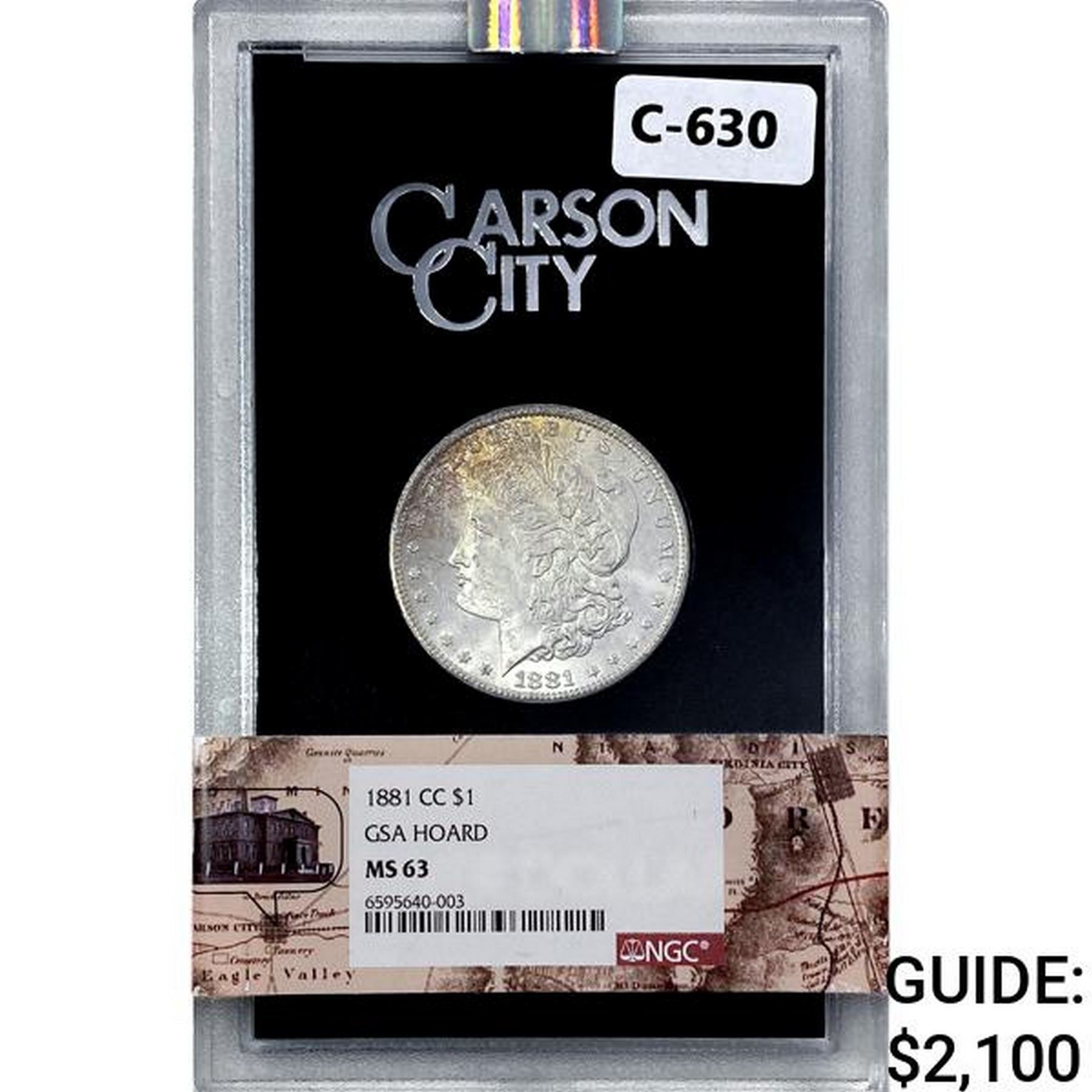 1881-CC Morgan Silver Dollar NGC MS63 GSA