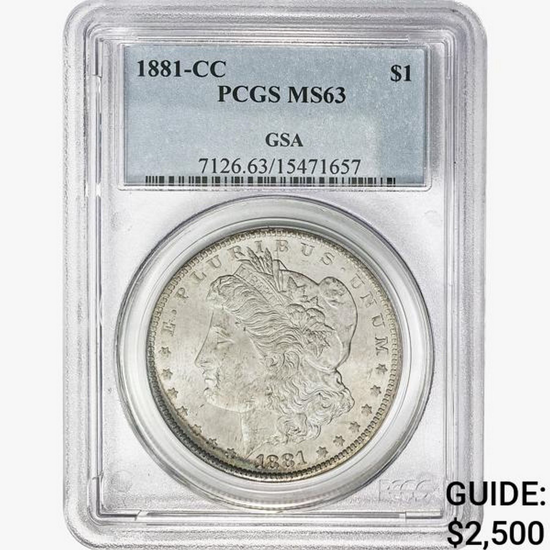 1881-CC Morgan Silver Dollar PCGS MS63