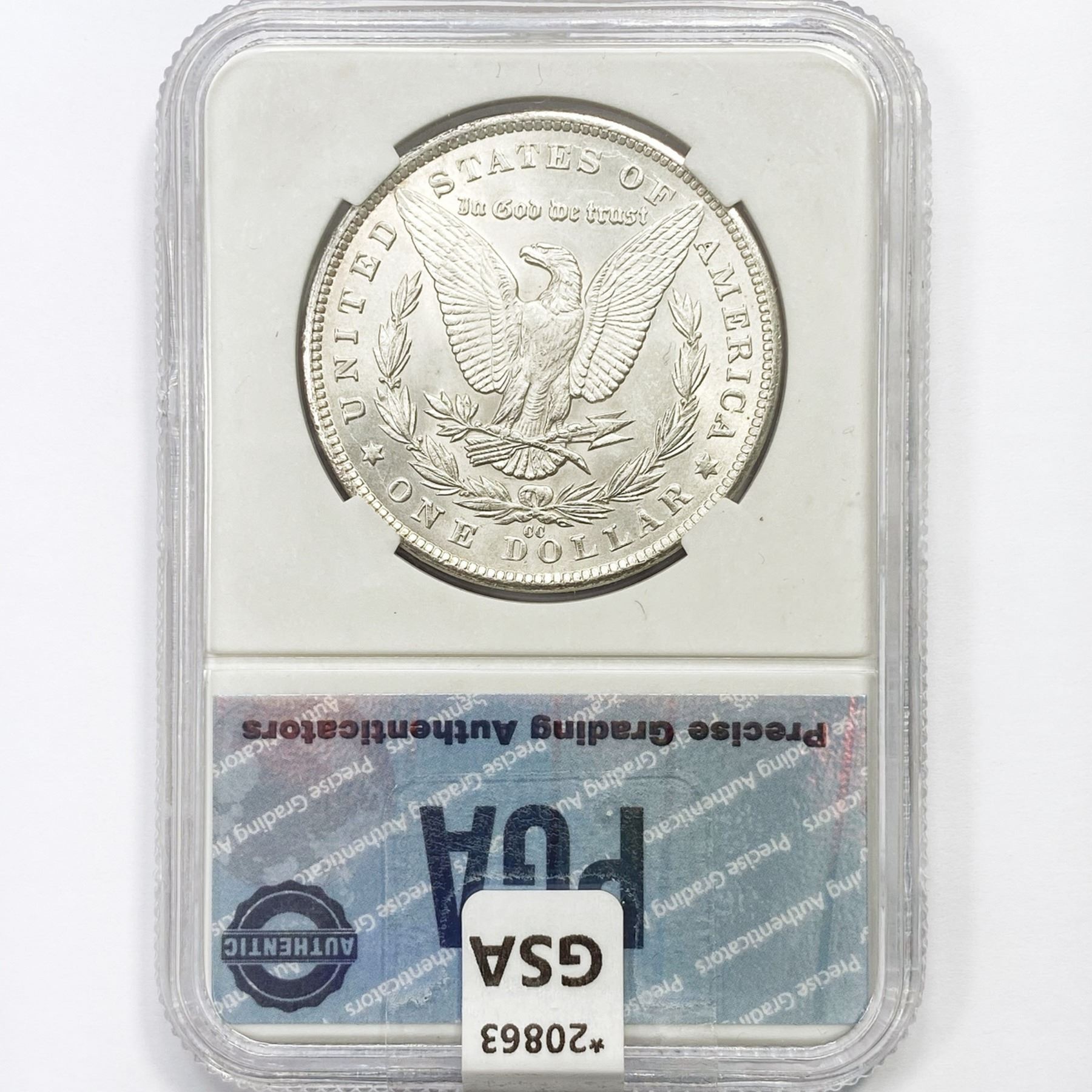 COINS AND CURRENCY LISTED IN GSA’S CATALOG AS GRADED AND ENCAPSULATED BY PCGS, NGC, ANACS, ICG, PCGS CURRENCY, PMG, PCGS BANKNOTE GRADING, CMC OR ANY OTHER THIRD-PARTY GRADING SERVICE ARE LIKEWISE SOLD “AS-IS” EXCEPT AS EXPRESSLY SET FORTH HEREIN. ALL THIRD-PARTY GRADING SERVICE GUARANTEES, INCLUDING AUTHENTICITY, ARE THE SOLE RESPONSIBILITY OF THE THIRD-PARTY GRADING SERVICE AND NOT WARRANTIES OR GUARANTEES OF GSA. BIDDERS SHOULD CONTACT THESE THIRD-PARTY GRADING SERVICES DIRECTLY WITH RESPECT TO ANY CLAIMS OR QUESTIONS THEY MAY HAVE CONCERNING THEIR GUARANTEES AND WARRANTIES. BIDDERS ACKNOWLEDGE AND AGREE THAT AUCTIONEER IS NOT BOUND BY OR LIABLE FOR ANY OPINION OR CERTIFICATION BY ANY THIRD-PARTY GRADING SERVICE. REMOVAL OF A PRODUCT FROM ITS PROTECTIVE CASING OR HOLDER OR ALTERATION OF ANY COIN HOLDER WAIVES ALL RIGHTS CONCERNING THE PRODUCT CONTAINED THEREIN.
