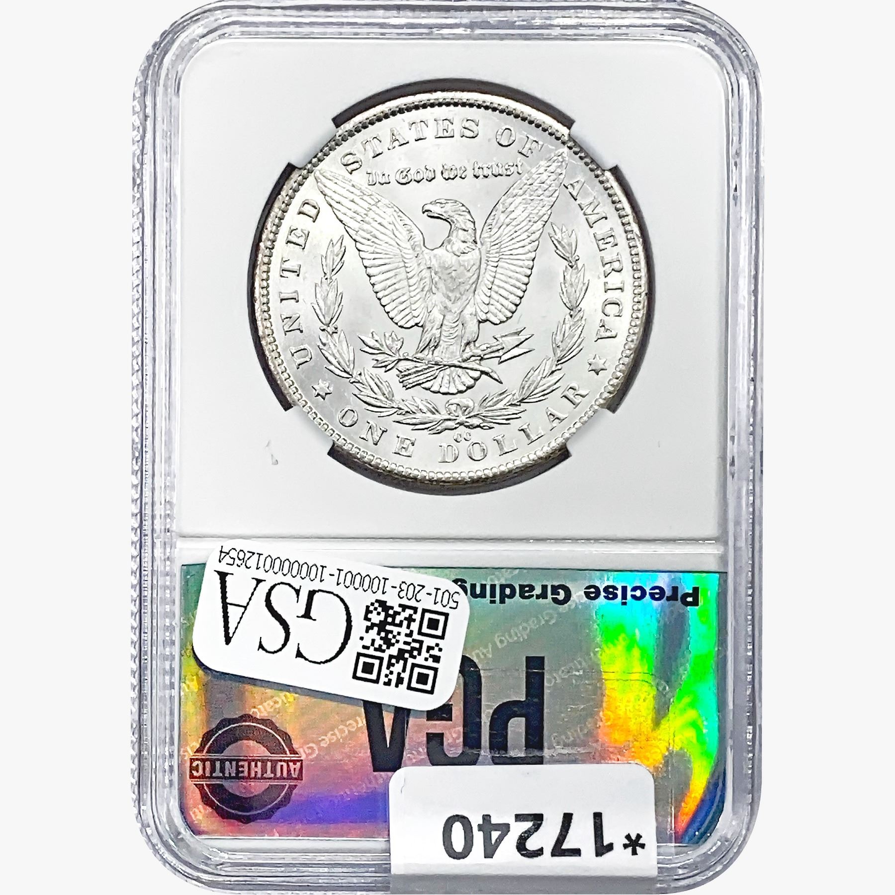 COINS AND CURRENCY LISTED IN GSA’S CATALOG AS GRADED AND ENCAPSULATED BY PCGS, NGC, ANACS, ICG, PCGS CURRENCY, PMG, PCGS BANKNOTE GRADING, CMC OR ANY OTHER THIRD-PARTY GRADING SERVICE ARE LIKEWISE SOLD “AS-IS” EXCEPT AS EXPRESSLY SET FORTH HEREIN. ALL THIRD-PARTY GRADING SERVICE GUARANTEES, INCLUDING AUTHENTICITY, ARE THE SOLE RESPONSIBILITY OF THE THIRD-PARTY GRADING SERVICE AND NOT WARRANTIES OR GUARANTEES OF GSA. BIDDERS SHOULD CONTACT THESE THIRD-PARTY GRADING SERVICES DIRECTLY WITH RESPECT TO ANY CLAIMS OR QUESTIONS THEY MAY HAVE CONCERNING THEIR GUARANTEES AND WARRANTIES. BIDDERS ACKNOWLEDGE AND AGREE THAT AUCTIONEER IS NOT BOUND BY OR LIABLE FOR ANY OPINION OR CERTIFICATION BY ANY THIRD-PARTY GRADING SERVICE. REMOVAL OF A PRODUCT FROM ITS PROTECTIVE CASING OR HOLDER OR ALTERATION OF ANY COIN HOLDER WAIVES ALL RIGHTS CONCERNING THE PRODUCT CONTAINED THEREIN.