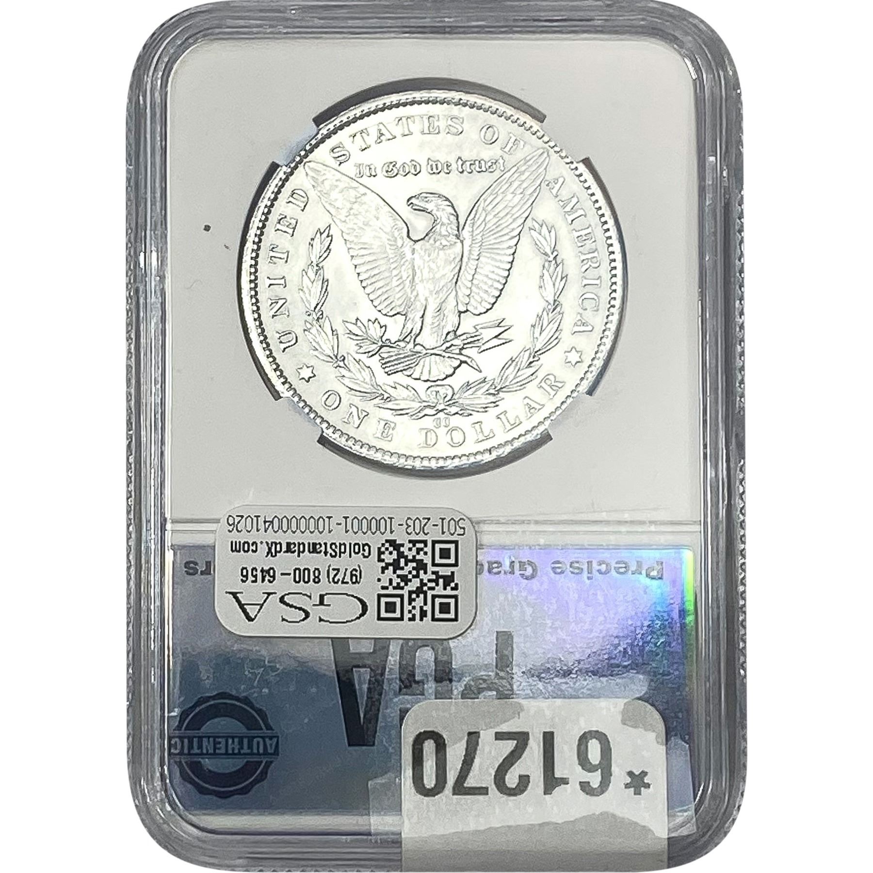 e. Coins sold referencing a third-party grading service are sold “AS IS” without any express or implied warranty, except for a guarantee by GSA that they are genuine. Removal or alteration of the holder, voids all of Bidder’s claims concerning that Product. Certain warranties may be available from the grading services and Bidders are referred to them for further details: Numismatic Guaranty Corporation (NGC), PO Box 4776, Sarasota, FL 34230, www.ngccoin.com/services/writtenguarantee.asp; Professional Coin Grading Services (PCGS), PO Box 9458, Newport Beach, CA 92658, www.pcgs.com/guarantee.html; ANACS, 6555 S. Kenton St., Ste. 303, Englewood, CO 80111; and Independent Coin Grading Co. (ICG), 7901 East Bellview, Ave., Suite 50, Englewood, CO 80111.