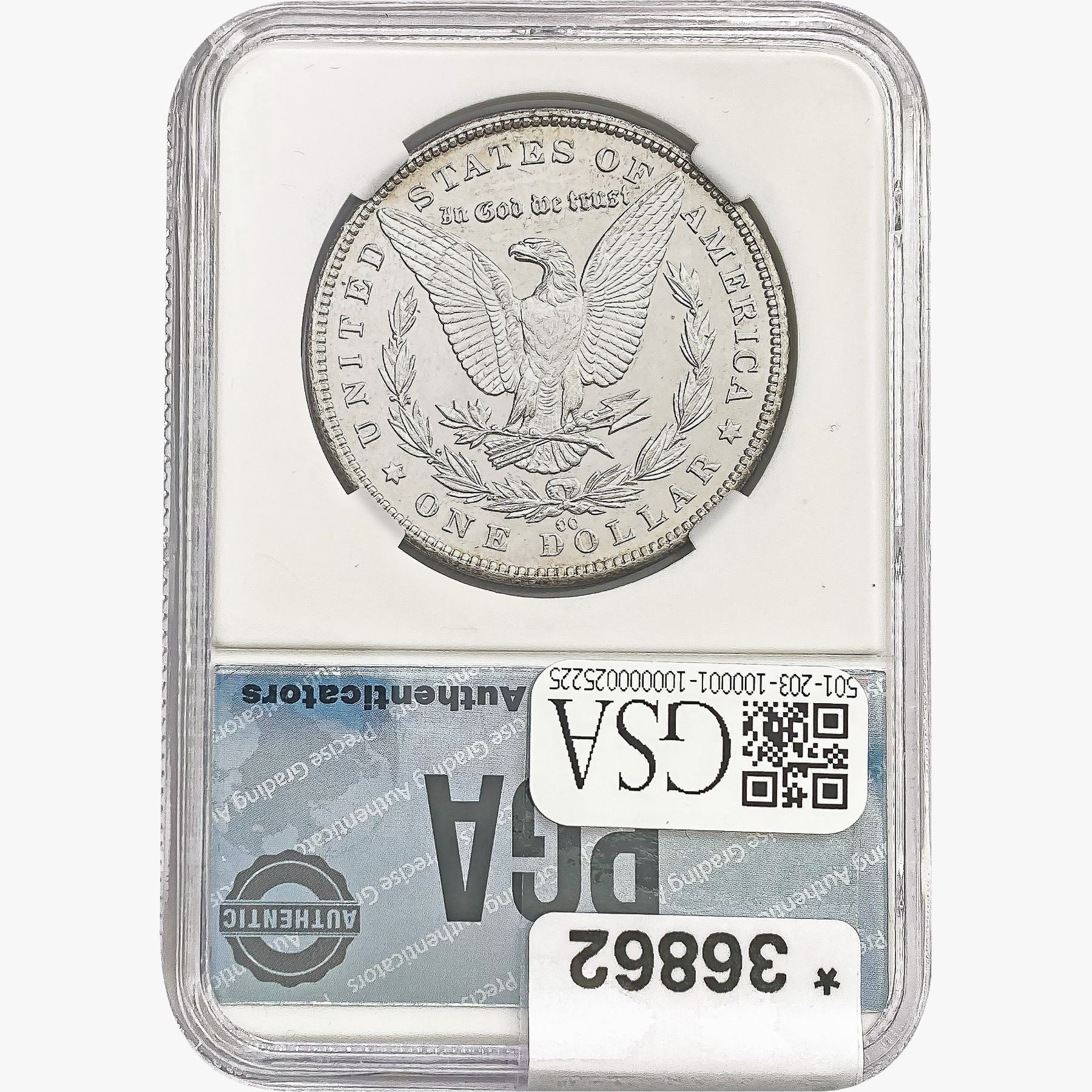 COINS AND CURRENCY LISTED IN GSA’S CATALOG AS GRADED AND ENCAPSULATED BY PCGS, NGC, ANACS, ICG, PCGS CURRENCY, PMG, PCGS BANKNOTE GRADING, CMC OR ANY OTHER THIRD-PARTY GRADING SERVICE ARE LIKEWISE SOLD “AS-IS” EXCEPT AS EXPRESSLY SET FORTH HEREIN. ALL THIRD-PARTY GRADING SERVICE GUARANTEES, INCLUDING AUTHENTICITY, ARE THE SOLE RESPONSIBILITY OF THE THIRD-PARTY GRADING SERVICE AND NOT WARRANTIES OR GUARANTEES OF GSA. BIDDERS SHOULD CONTACT THESE THIRD-PARTY GRADING SERVICES DIRECTLY WITH RESPECT TO ANY CLAIMS OR QUESTIONS THEY MAY HAVE CONCERNING THEIR GUARANTEES AND WARRANTIES. BIDDERS ACKNOWLEDGE AND AGREE THAT AUCTIONEER IS NOT BOUND BY OR LIABLE FOR ANY OPINION OR CERTIFICATION BY ANY THIRD-PARTY GRADING SERVICE. REMOVAL OF A PRODUCT FROM ITS PROTECTIVE CASING OR HOLDER OR ALTERATION OF ANY COIN HOLDER WAIVES ALL RIGHTS CONCERNING THE PRODUCT CONTAINED THEREIN.