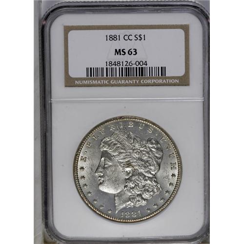 1881-CC S$1 MS63 NGC. A brilliant and satiny Mint Stat 1881-CC
