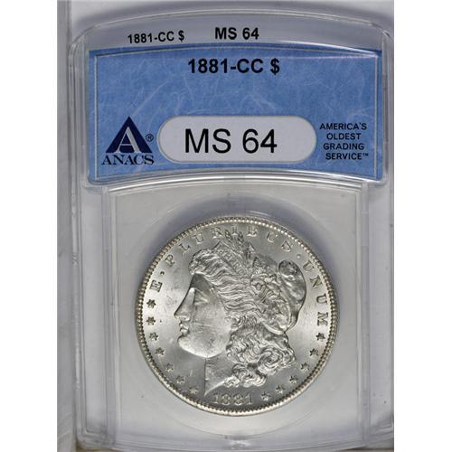 1881-CC S$1 MS64 ANACS. This well struck Carson City r 1881-CC
