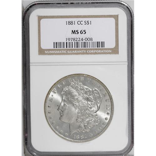 1881-CC S$1 MS65 NGC. A brilliant, slightly frosty Gem