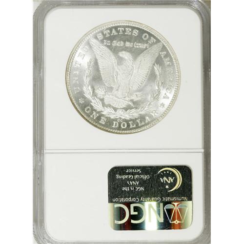 1881-CC S$1 MS65 NGC. Silver-gray surfaces exhibit jus