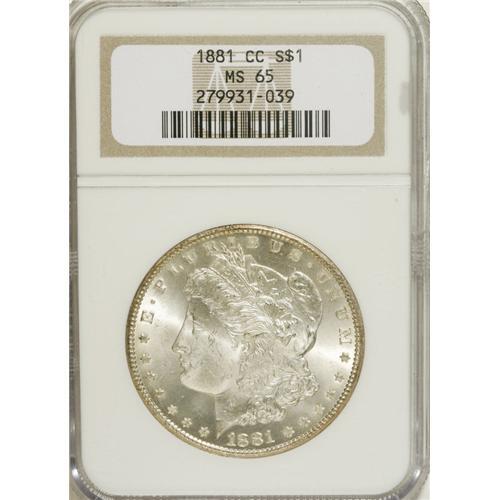 1881-CC S$1 MS65 NGC. This low-mintage (296,000 pieces