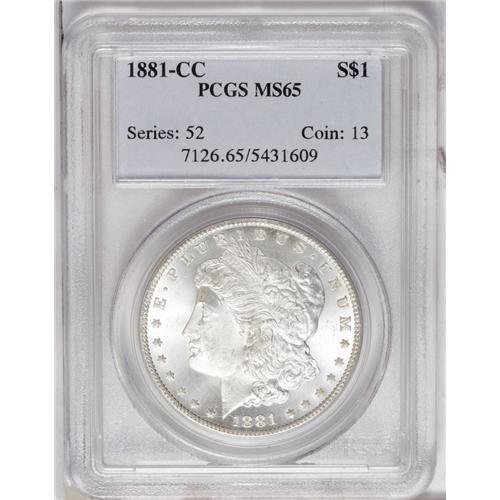 1881-CC S$1 MS65 PCGS. An elegant Gem, boldly struck w