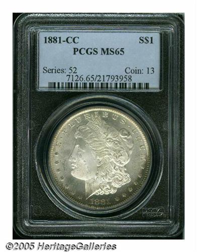 1881-CC S$1 MS65 PCGS. Bands of golden-brown, pow