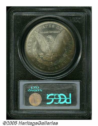 <B>1881-CC<S$1> MS65 PCGS.</B></I> Bands of golden-brown, powder-blue, rose, and apricot color endow the lower borders of this assertively struck and semi-prooflike Gem. An eternally popular low mintage Carson City issue.