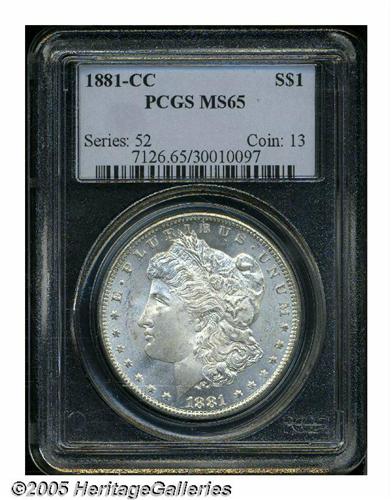 1881-CC S$1 MS65 PCGS. The '81-CC, a low mintage