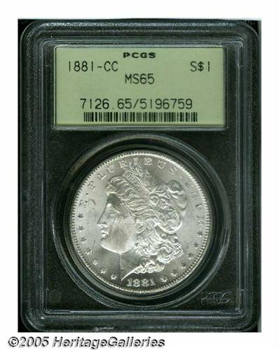 1881-CC S$1 MS65 PCGS. White, with bright frosty