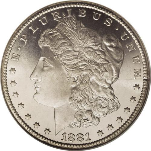 <B>1881-CC S$1 MS65 <img border='0' src='http://www.heritagecoins.com/images/star.gif' width=10 height=10> Deep Mirror Prooflike NGC.</B></I> Although a low-mintage issue (296,000 pieces), the 1881-CC is readily available in all Mint State grades. In MS65 With Star, Deep Mirror Prooflike, however, NGC has certified a mere two examples, and none finer! Sharply struck, strongly frosted design elements appear to float over deeply mirrored fields. Wisps of light tan color rest over portions of the motifs, and an even higher grade is precluded by some minor luster grazes. A must-see coin for the Morgan dollar aficionado!<BR><BR><b>Shipping:</b> Coins & Currency (<a target="_blank" href="http://www.heritageauctions.com/common/shipping.php">view shipping information</a>)