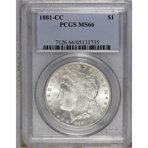 1881-CC S$1 MS66 PCGS. This boldly struck piece is bri