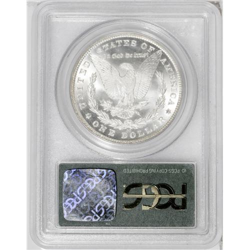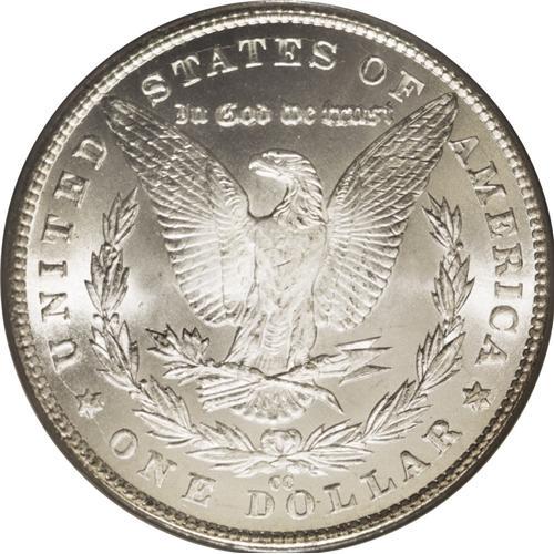 <B>1881-CC<img border='0' src='http://www.heritagecoins.com/images/star.gif' width=10 height=10>$1> MS67 PCGS.</B></I> The 1881-CC dollar, with a mintage of 296,000 pieces, should by most standards be a rarity today. But as David Bowers (1993) explains: "...large quantities...were stored by the Treasury, to be released 80 years later to delight a generation of numismatists unborn when the coins were made." This is an especially appealing specimen. Smooth, fully lustrous surfaces are impeccably preserved, and exhibit well executed design features. A whisper or two of light color is all that keeps this marvelous coin from the untoned category. The grade would likely be even higher were it not for a few trivial luster grazes on Liberty's cheek and a couple of light contact marks on the eagle's breast. A simply marvelous coin that will dazzle thee Morgan dollar aficionado. Population: 99 in 67, 3 finer (7/06).