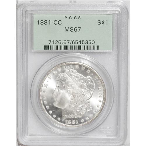 1881-CC S$1 MS67 PCGS. The 1881-CC dollar, with a mint