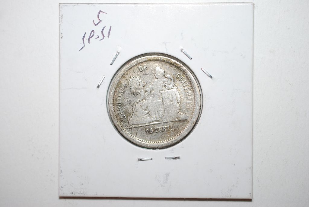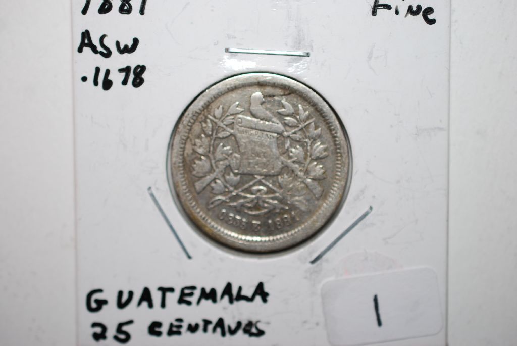 1881-E Guatemala 25 Centavos Foreign Coin; Fine; .1678 ASW; EST. $15-25