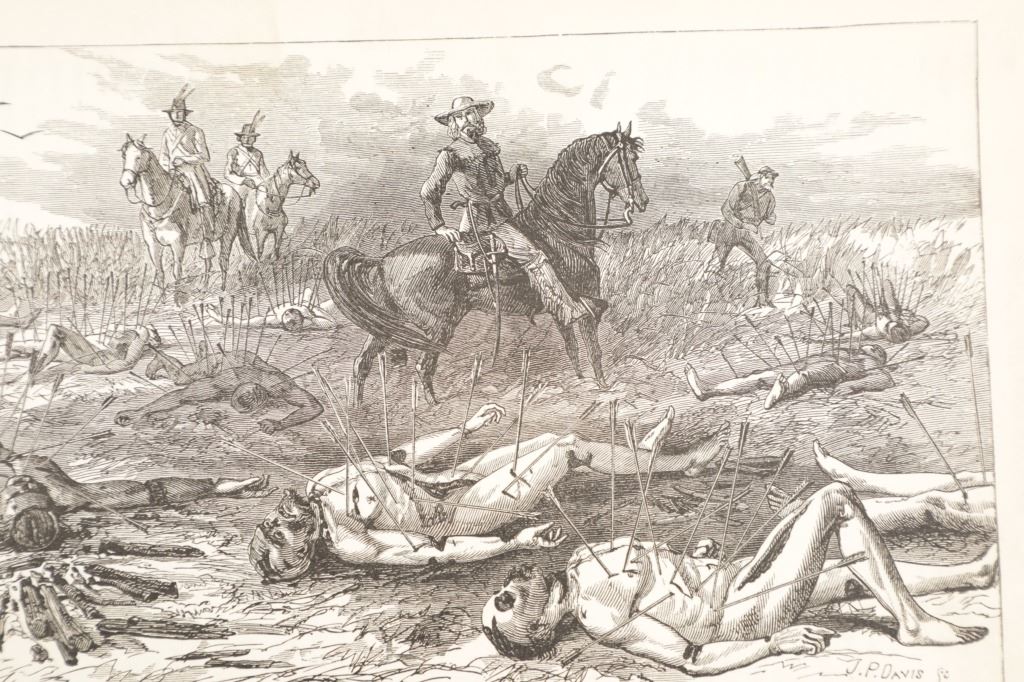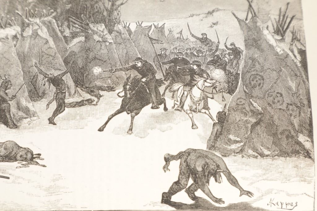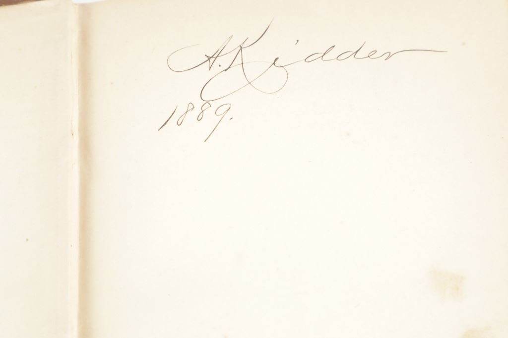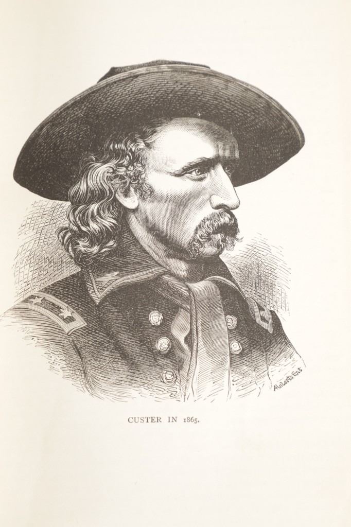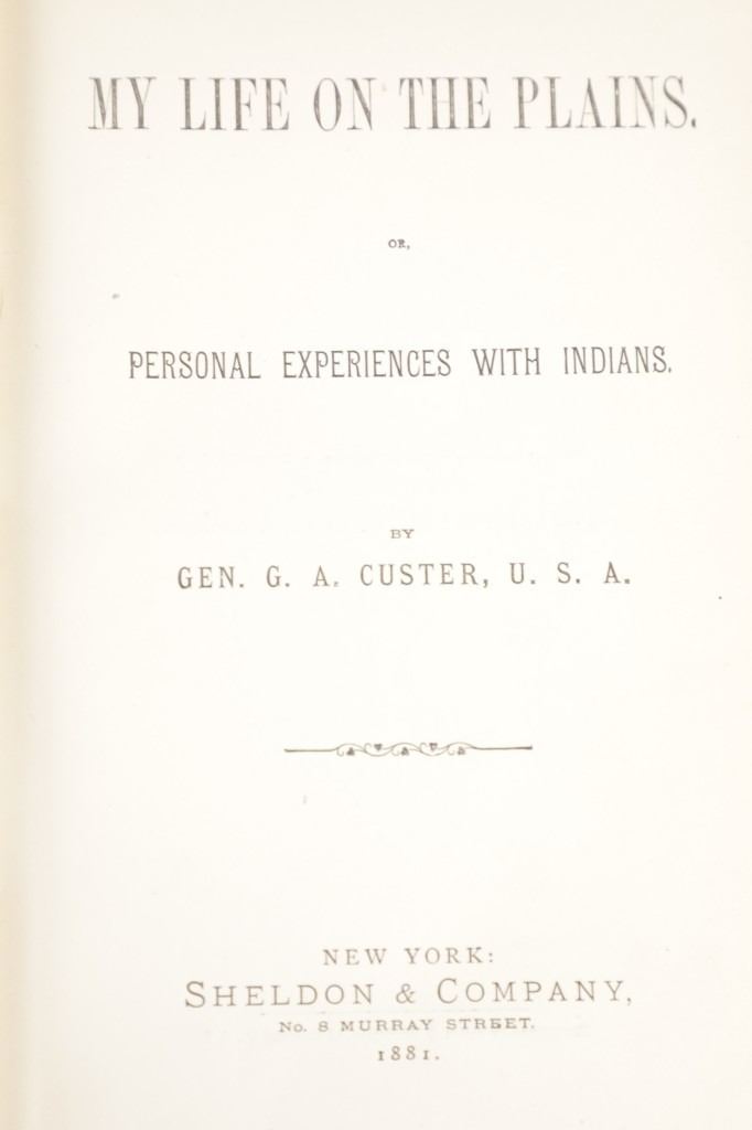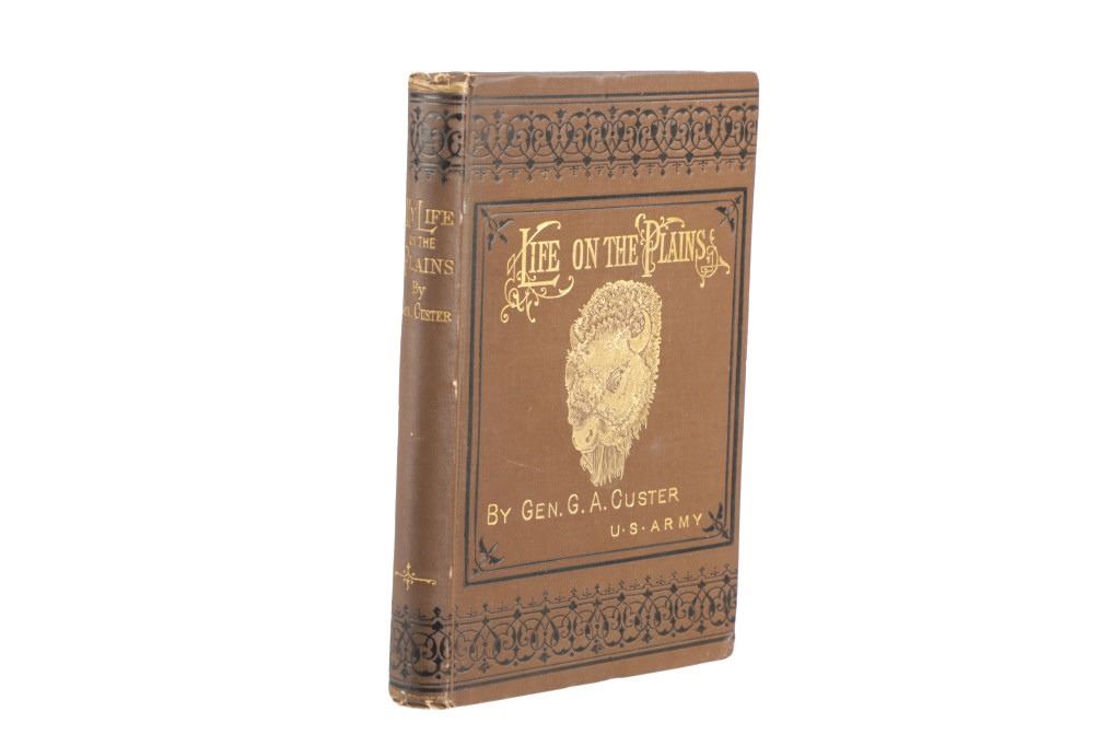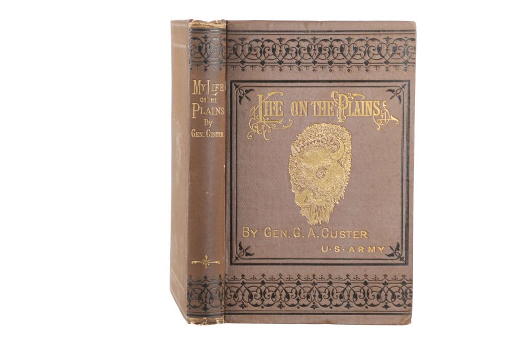 Featured in this lot is this1881 edition of "My Life on the Plains" written by General George A. Custer and published in 1881. The book features a gilt decorated cover and spine showing the image of a buffalo. The book chronicles General Custer's service with the 7th Cavalry after the Civil War. Custer served on the Western Frontier as a noted Indian fighter and was tragically killed at the Battle of the Little Bighorn in 1876. This book shows numerous illustrations throughout. The condition of this book is well preserved with some wear to the brown cloth wrapped cover with some browning to the pages consistent with age but otherwise shows a well preserved overall condition. The measurements of this book is 9 1/4" x 6 1/4". The collective weight of this book is 1lb 6oz. The book is signed by 'A. Kidder" - 1889.