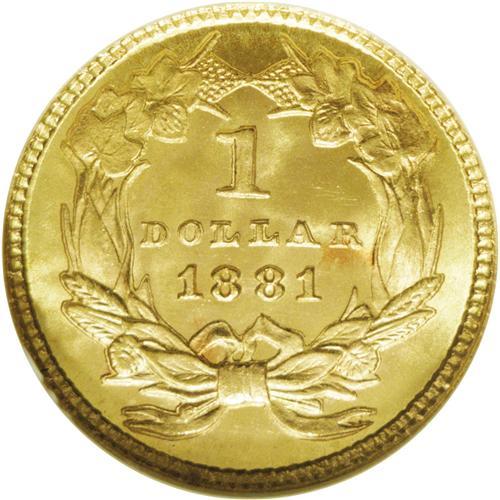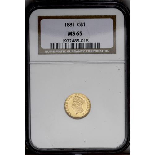 1881 G$1 MS65 NGC. A beautiful, luminous example that