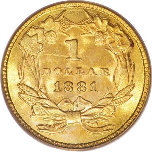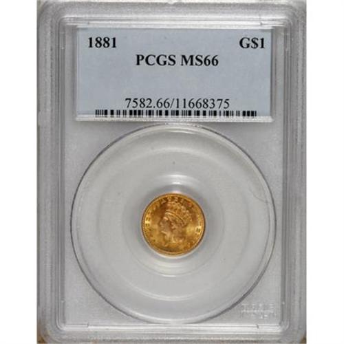 <B>1881 G$1 MS66 PCGS.</B></I> Lovely prooflike surfaces enhance the variegated lilac and peach-gold coloration that is seen on each side, with the lilac color seen over the highpoints of the devices. A sharp, even strike is seen throughout, and there are no significant marks to report. A popular date from the 1880s, and one with a mintage of only 7,600 pieces.<BR><BR><b>Shipping:</b> Coins & Currency (<a target="_blank" href="http://www.heritageauctions.com/common/shipping.php">view shipping information</a>)