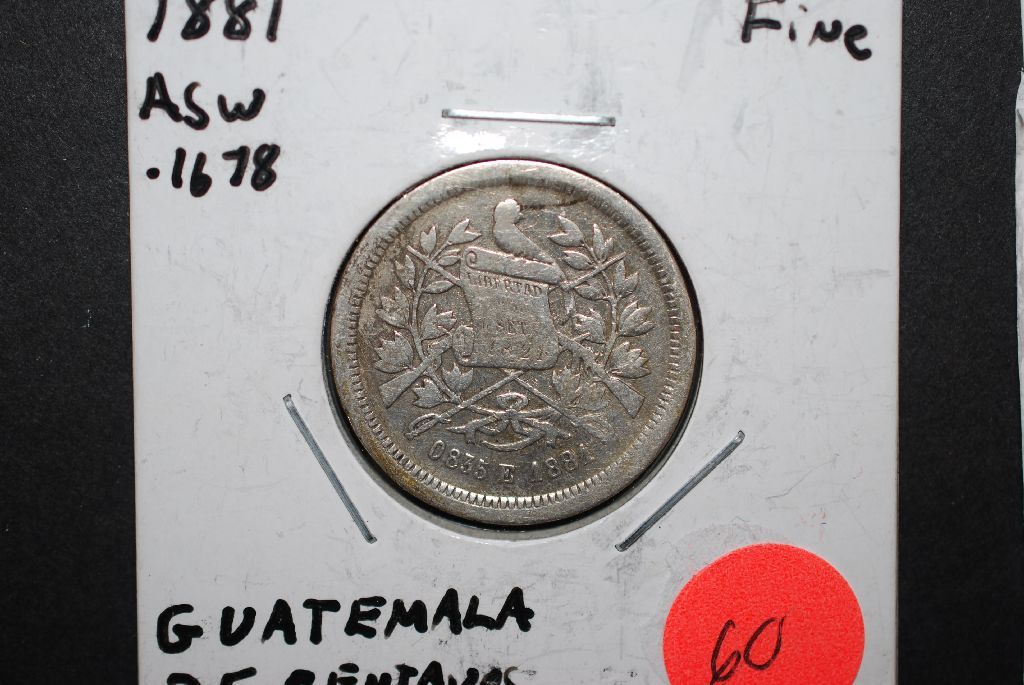 1881 Guatemala 25 Centavos Foreign Coin; Fine; .1678 ASW; EST. $15-25