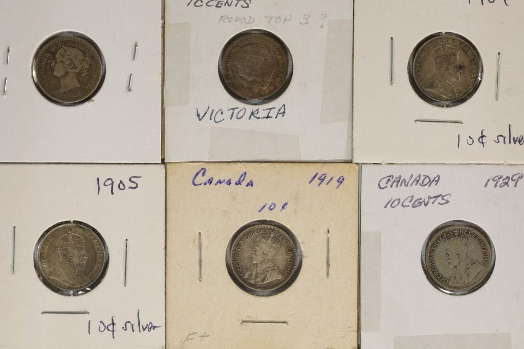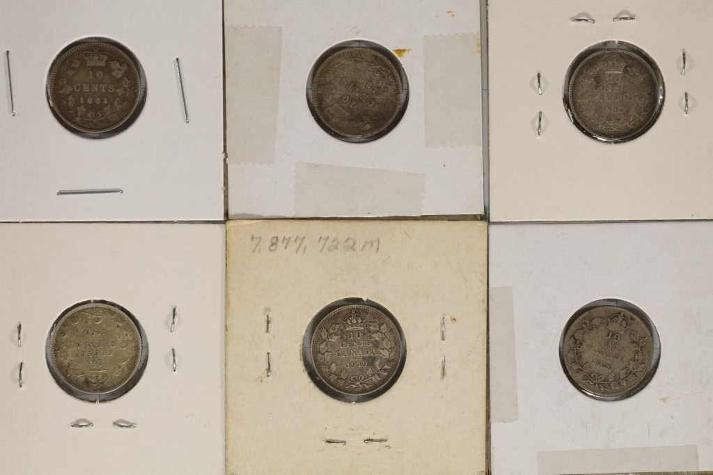 1881-H,93,1904,05,19 & 1929 CANADA SILVER 10 CENTS