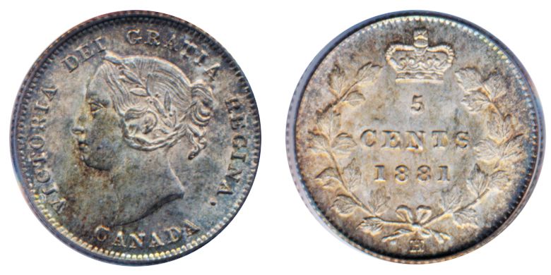 1881-H. Both ICCS and PCGS graded Mint State-64. Light, attractive multi-hued toning, predominately greens and golden-ambers.
