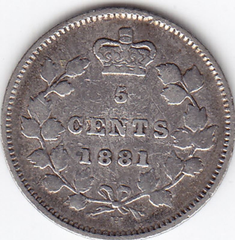 1881H Canadian Silver 5-Cent Coin - VF-20 Condition