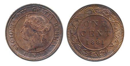 1881-H. ICCS Mint State-64. 60% even red luster.