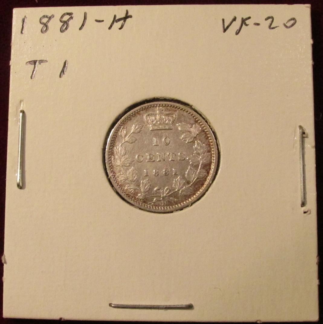 1881 H Type One Canada Silver Dime. VF. Catalog Value $500.00.