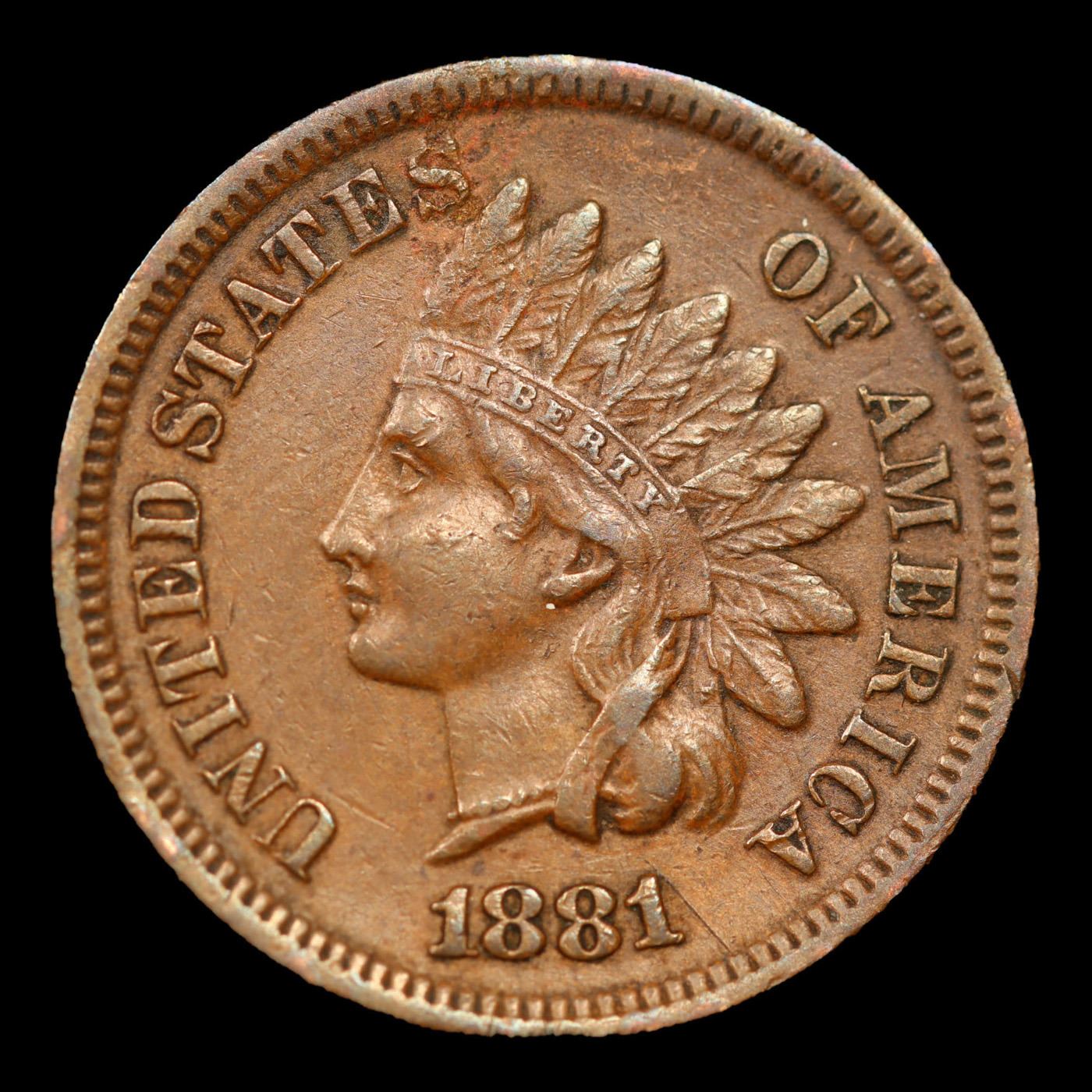 1881 Indian Cent 1c Grades Choice AU/BU Slider.