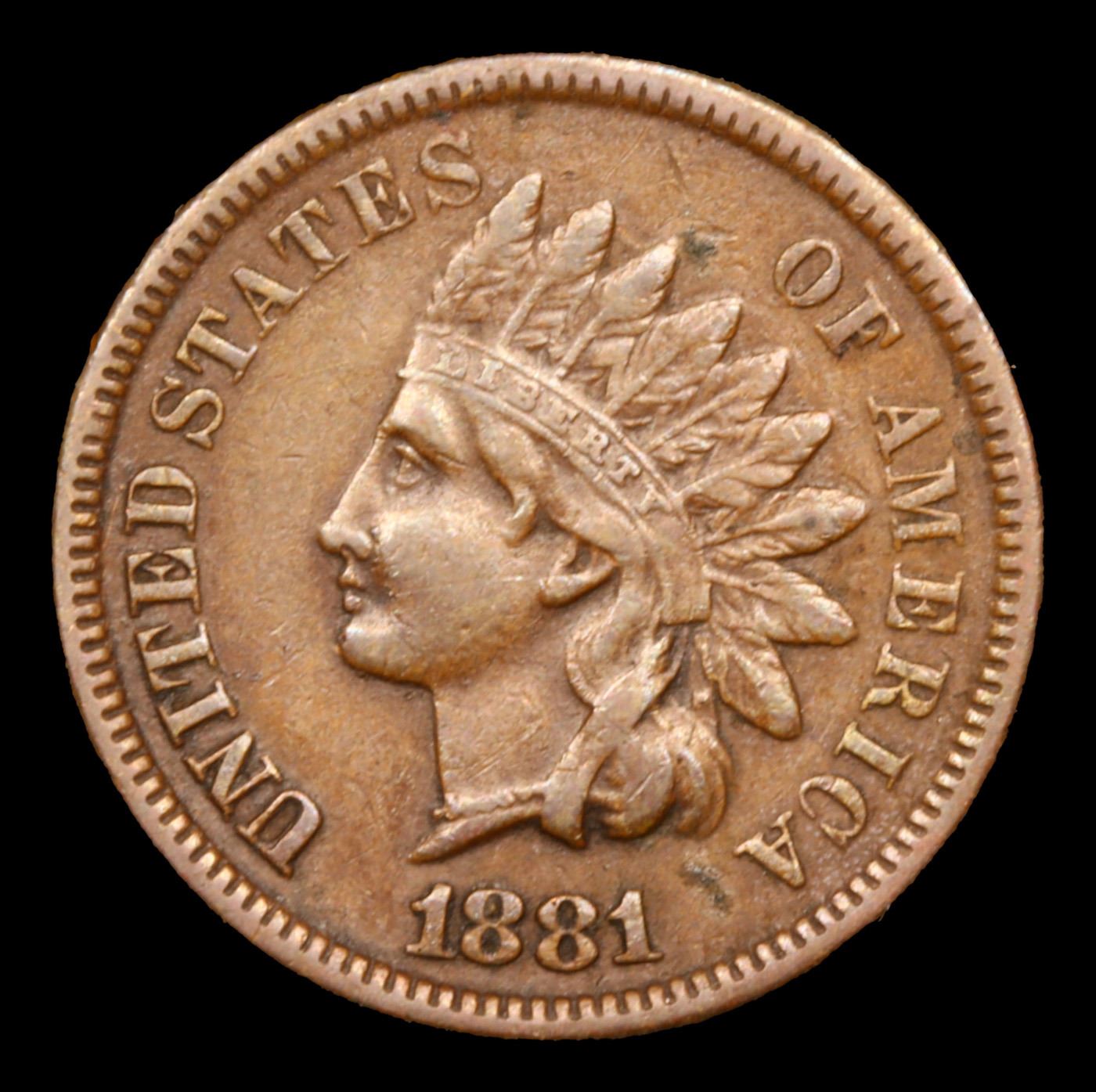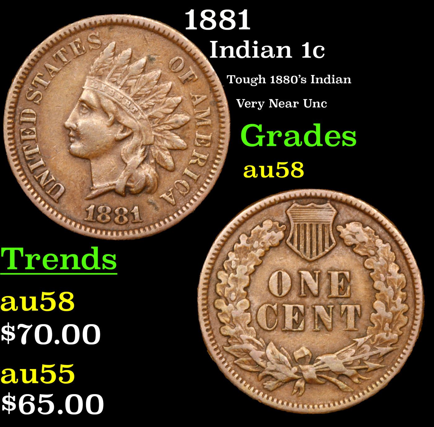 1881 Indian Cent 1c Grades Choice AU/BU Slider.